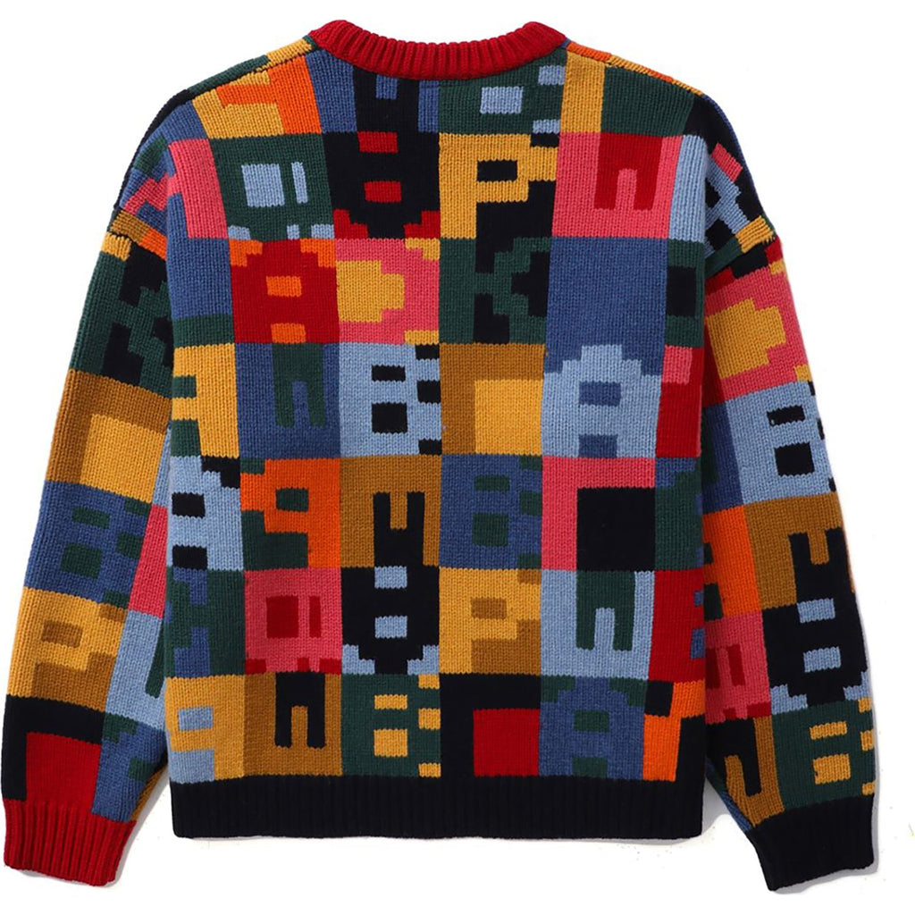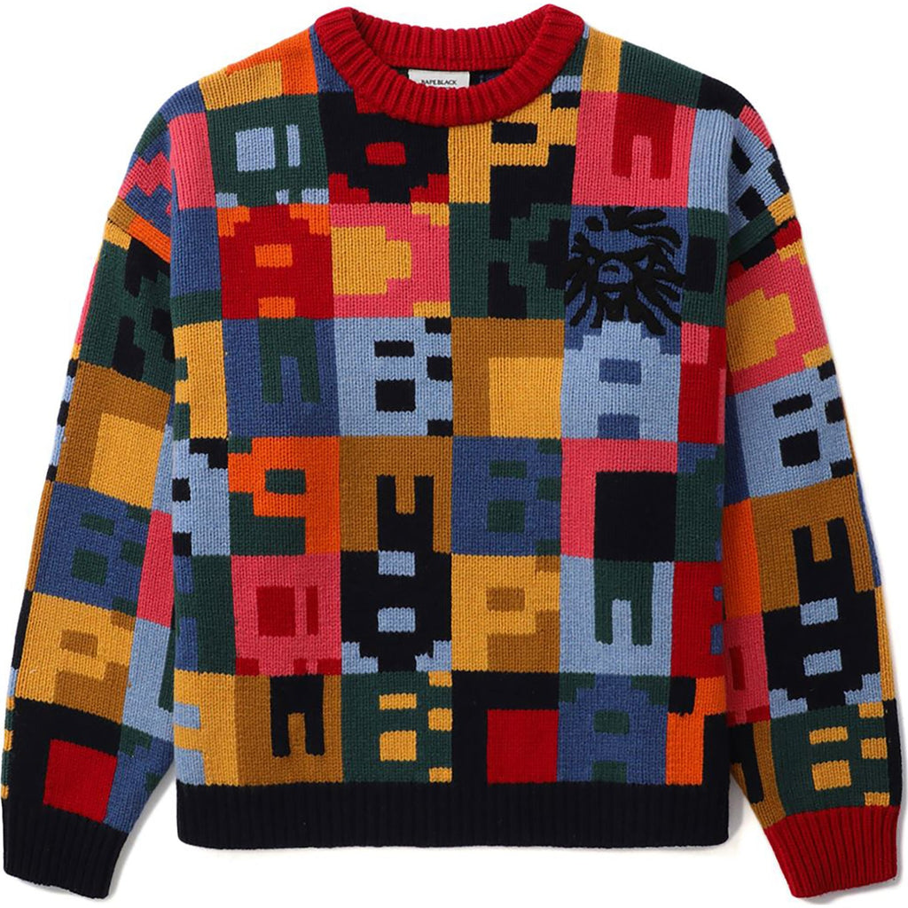 BAPE BLACK COLOR PATCHWORK JACQUARD KNIT SWEATER MENS
