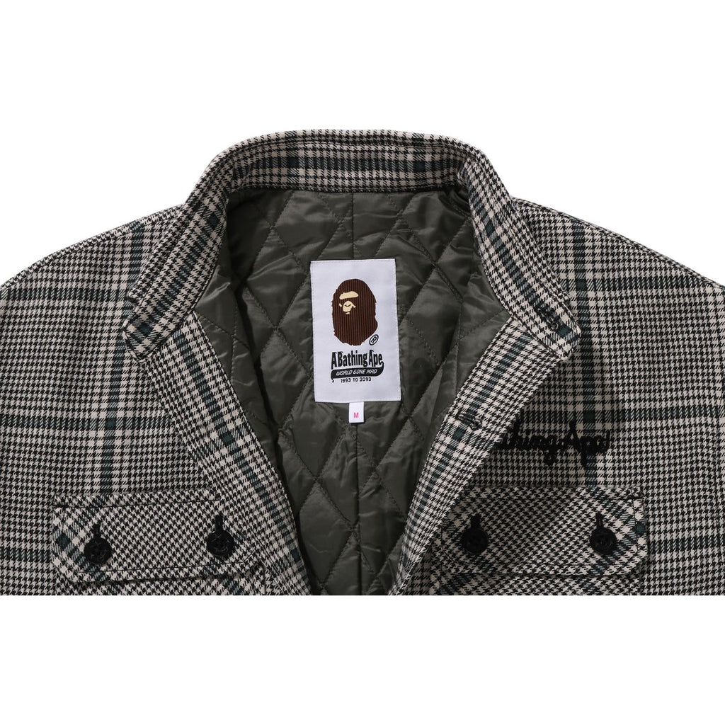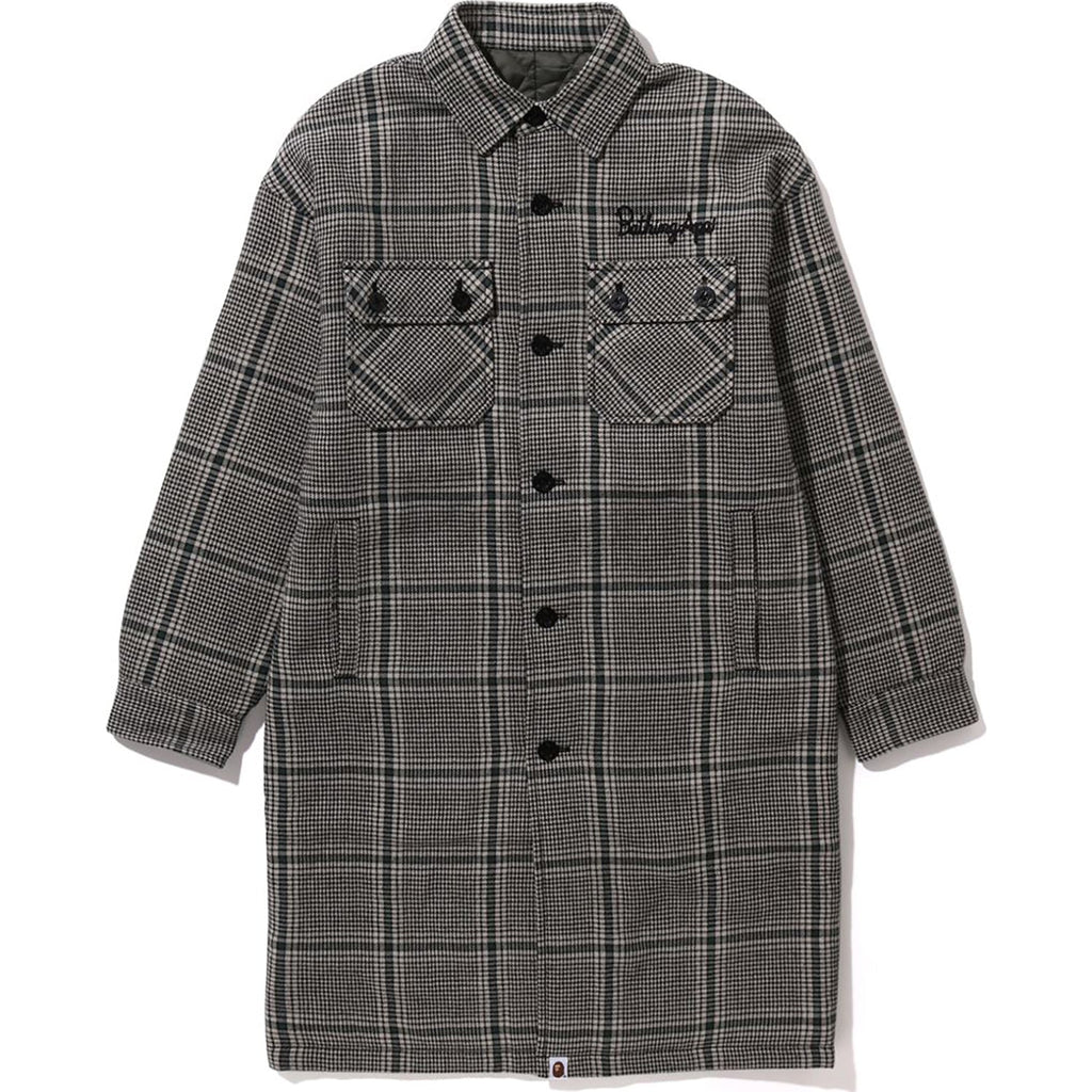 BAPE EMBROIDERY LOGO CHECK LONG SHIRT COAT LADIES