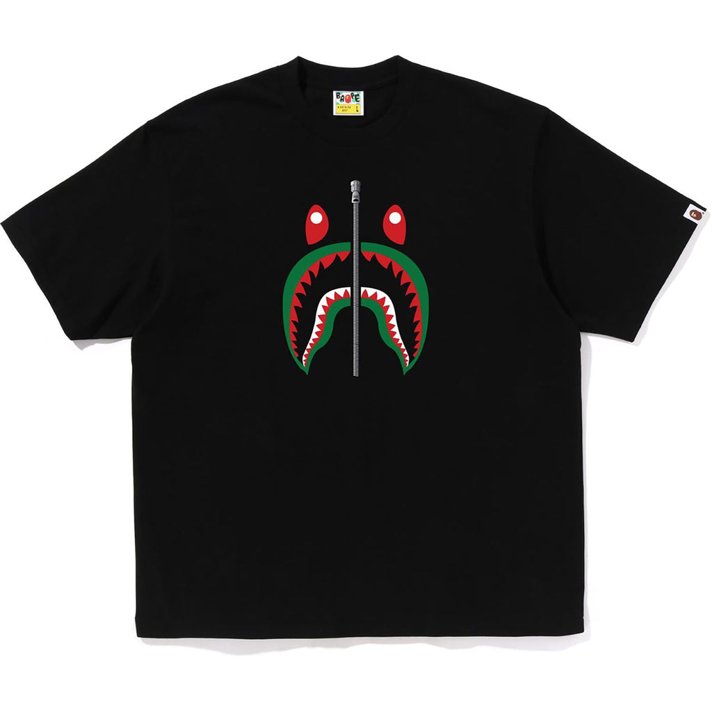 BAPE MENS BLACK COTTON SHARK ITALY T-SHIRT